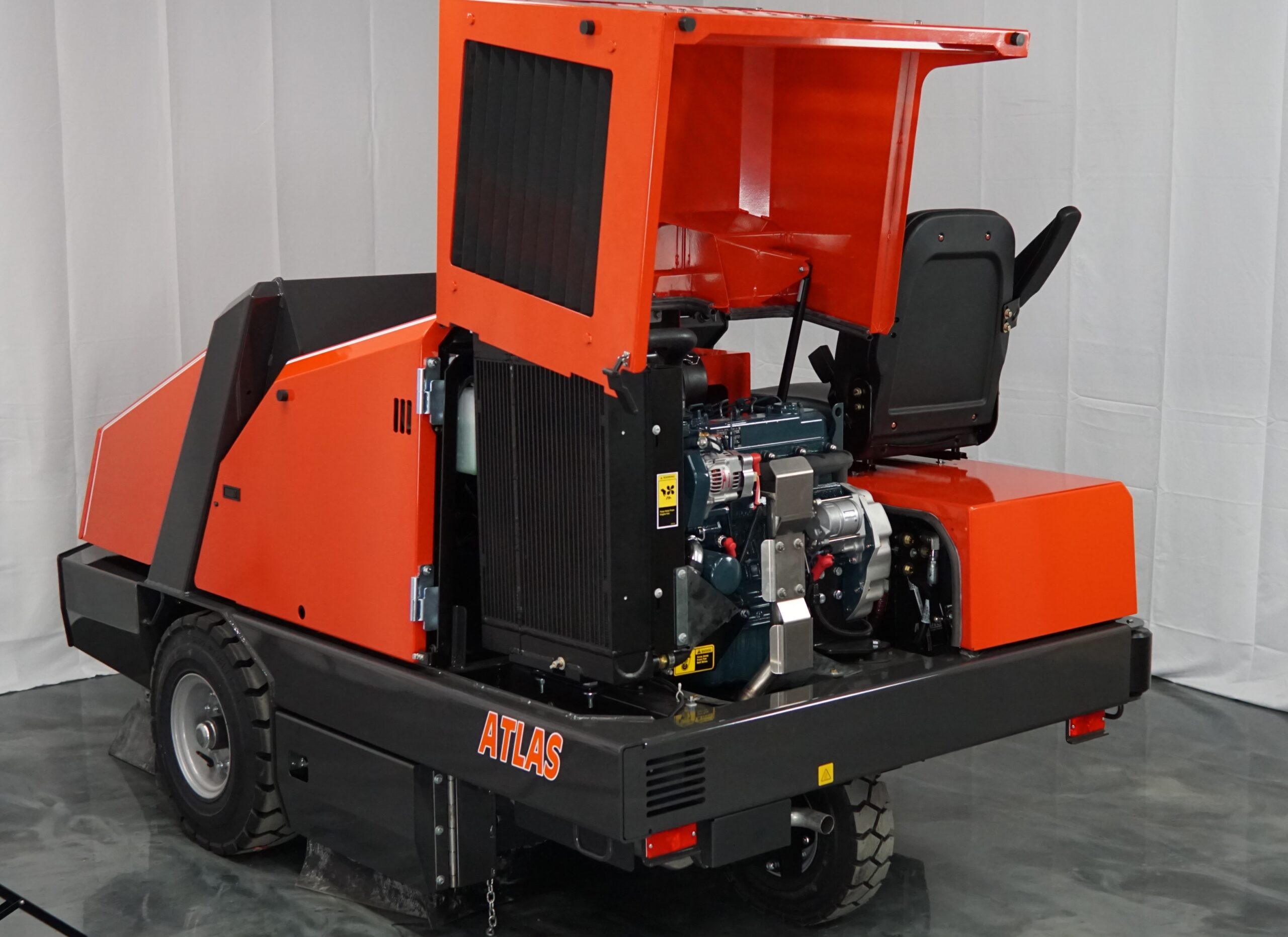 Equipped with a four-stage dust filtration system, including optional HEPA filters, the Atlas effectively controls dust, maintaining air quality in the workspace. Its large tires and PowerClimb feature allow for smooth navigation over obstacles like speed bumps and curbs, making it suitable for both indoor and outdoor applications such as warehouses, manufacturing plants, and parking facilities.
